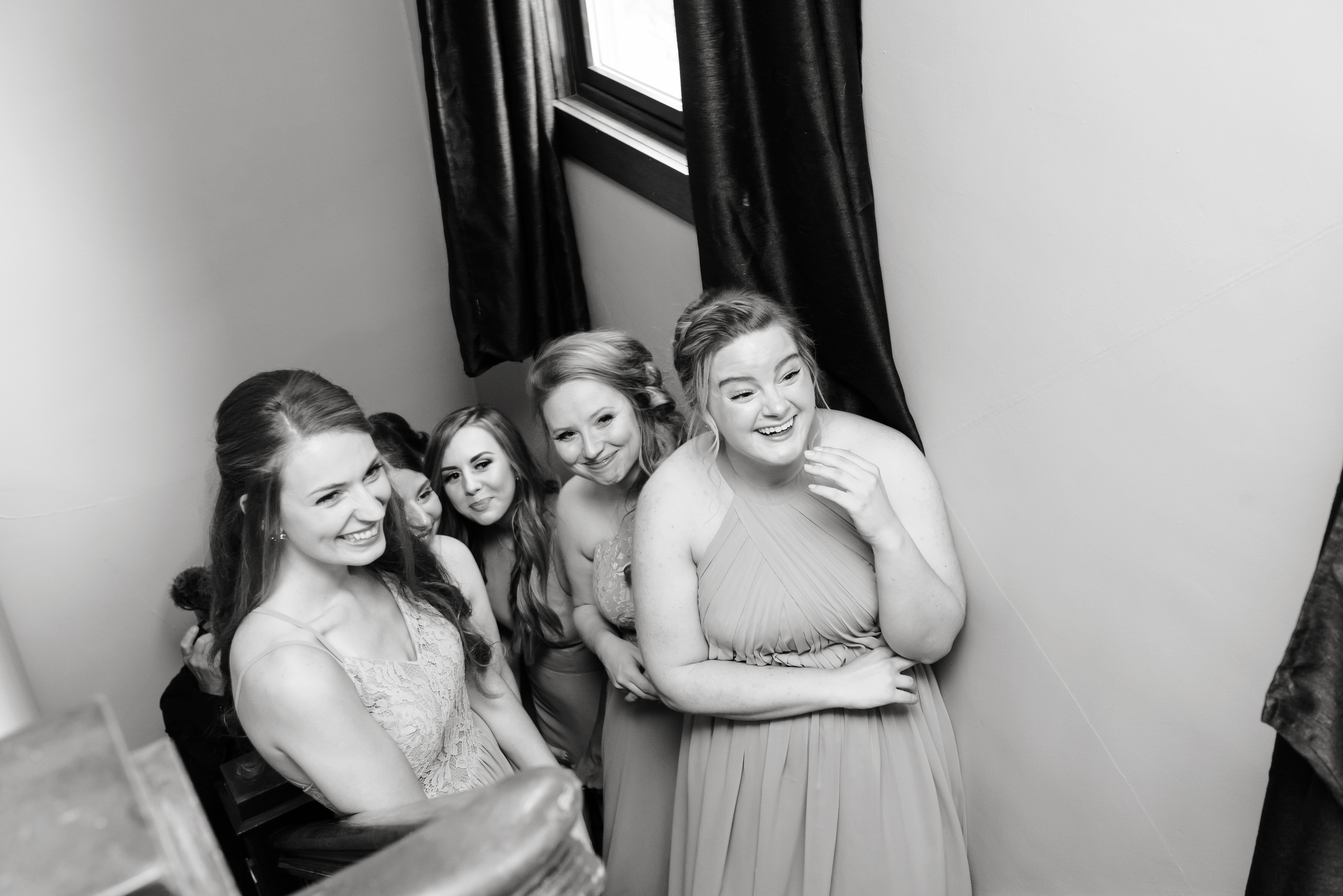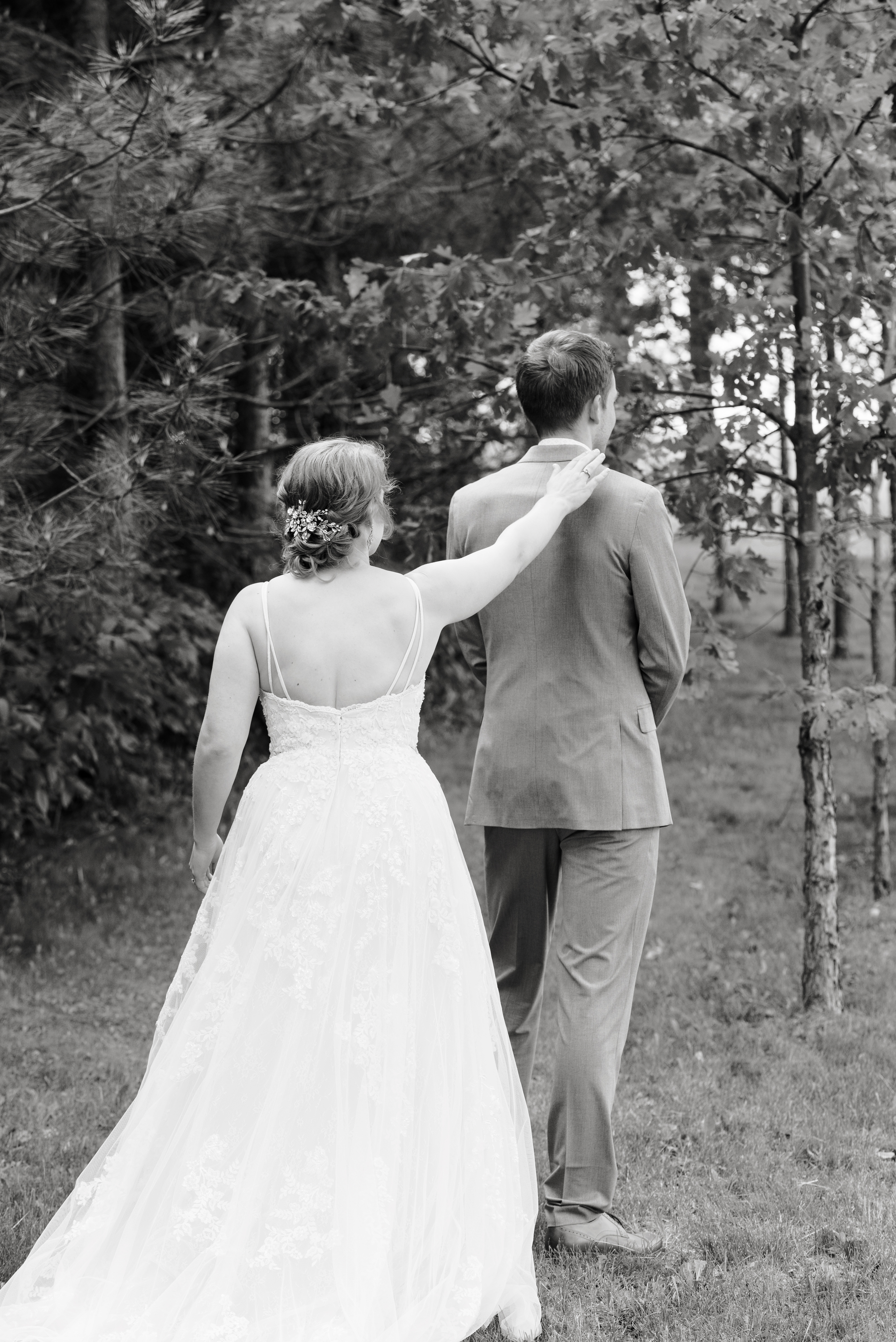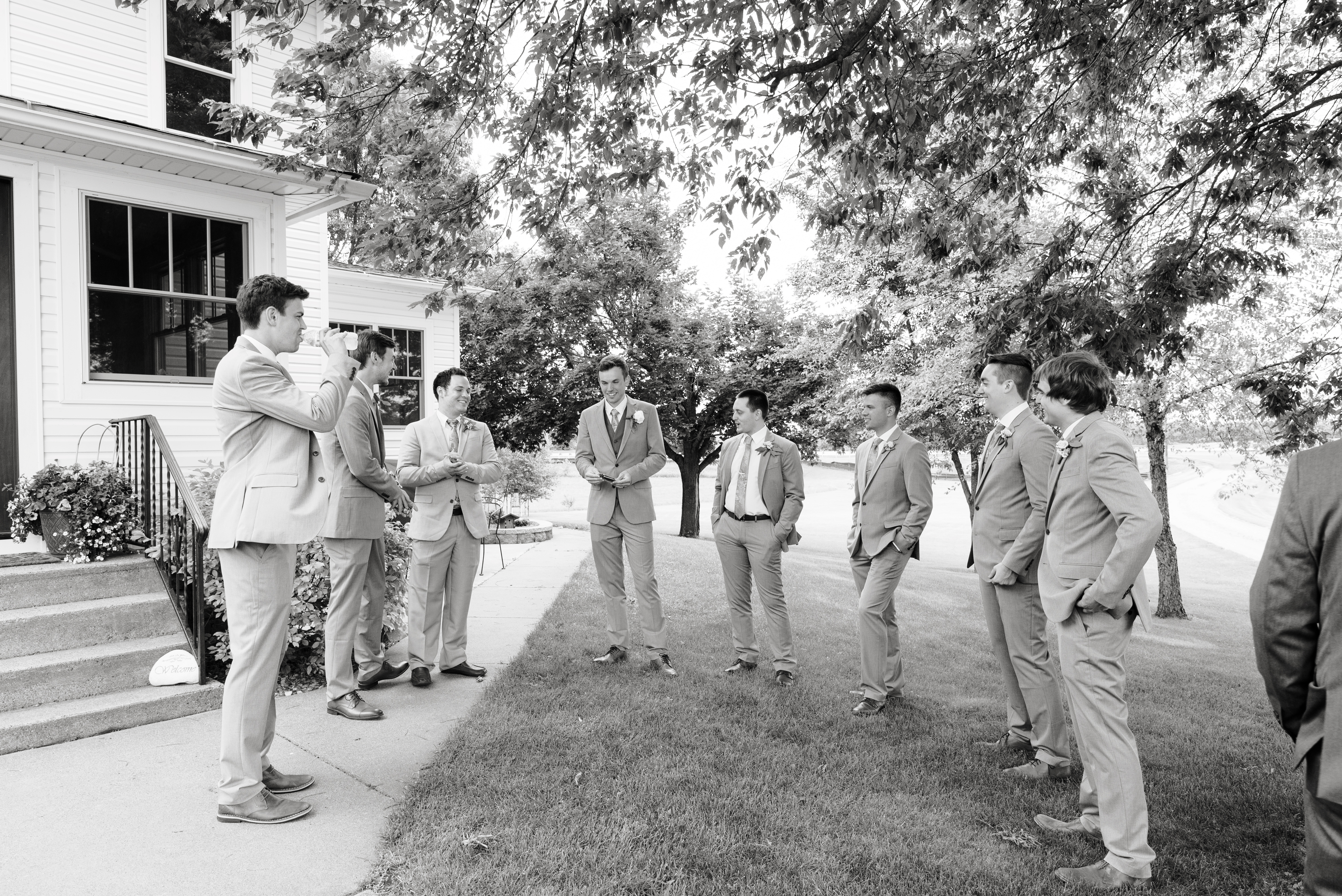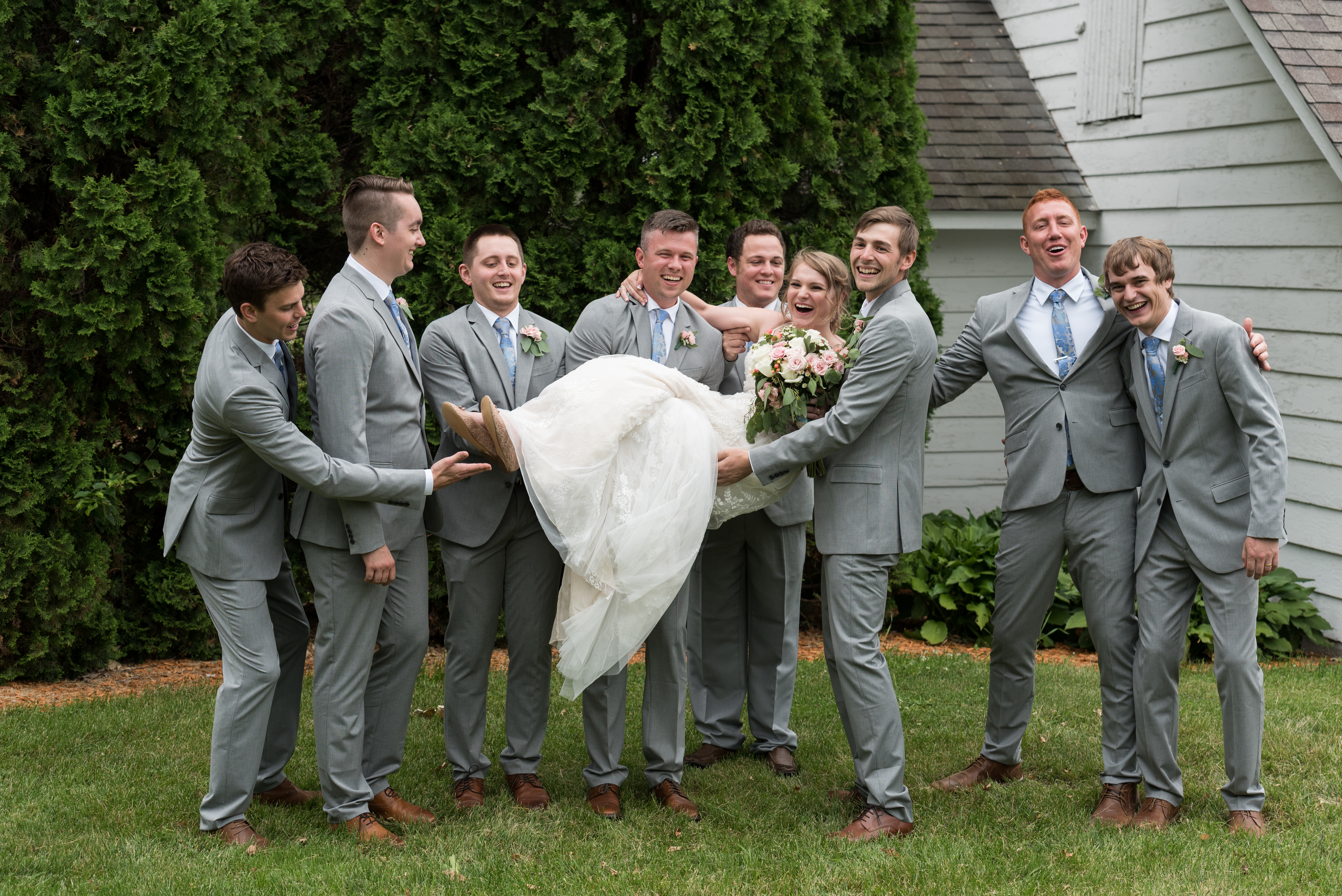We all got ready at my parent’s house. Our wedding party was filled with family and mutual friends, so during the entire wedding process, I never wanted the parties to be separated. We had a couple’s/family shower and a joint bachelor/bachelorette weekend away at a cabin. The wedding was no different. Except for having two designated changing areas, we were able to spend the morning together, playing games, chatting, and sharing the same nervous energy. Until I actually put on my wedding dress right before the first look, I didn’t care how much my husband saw me.