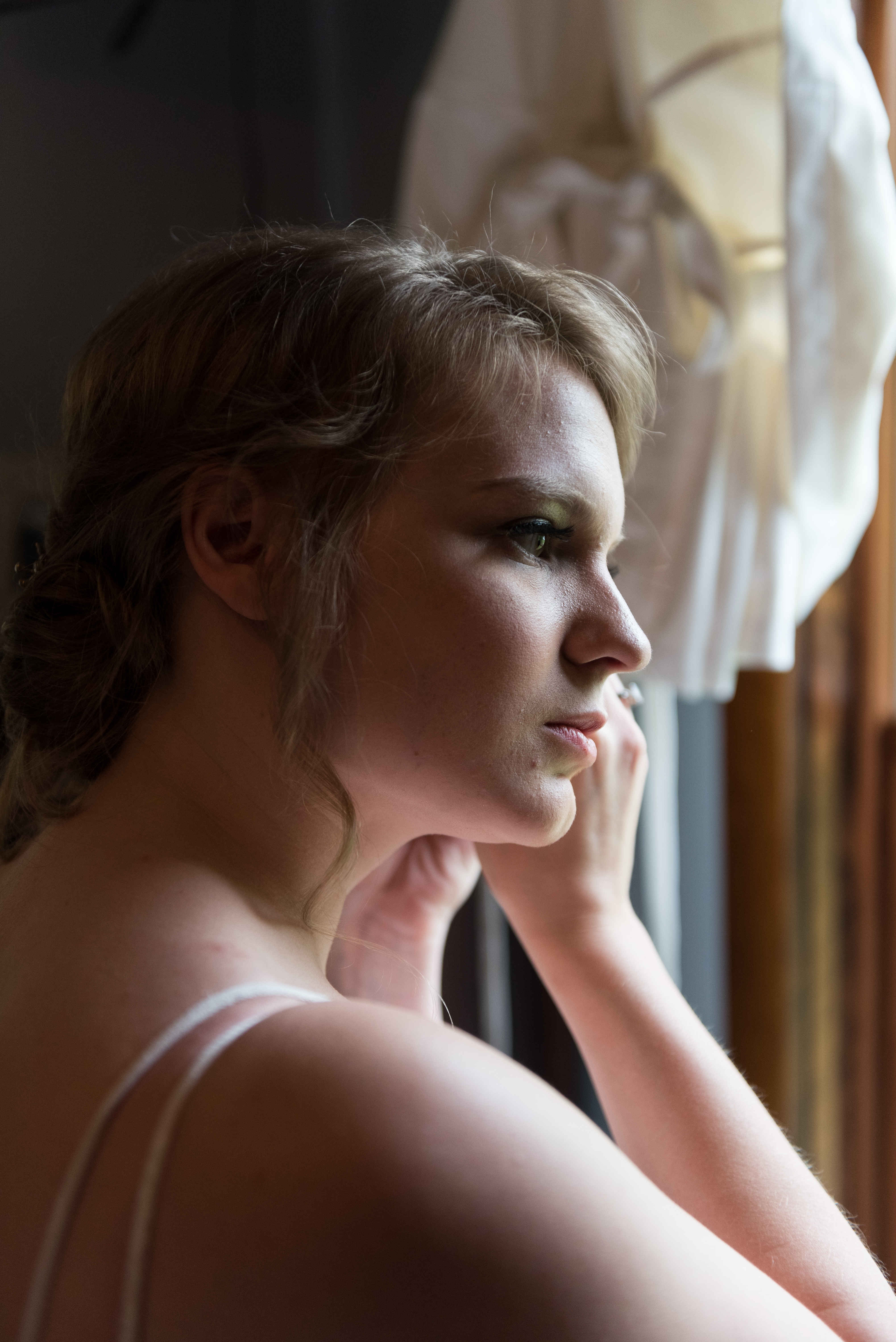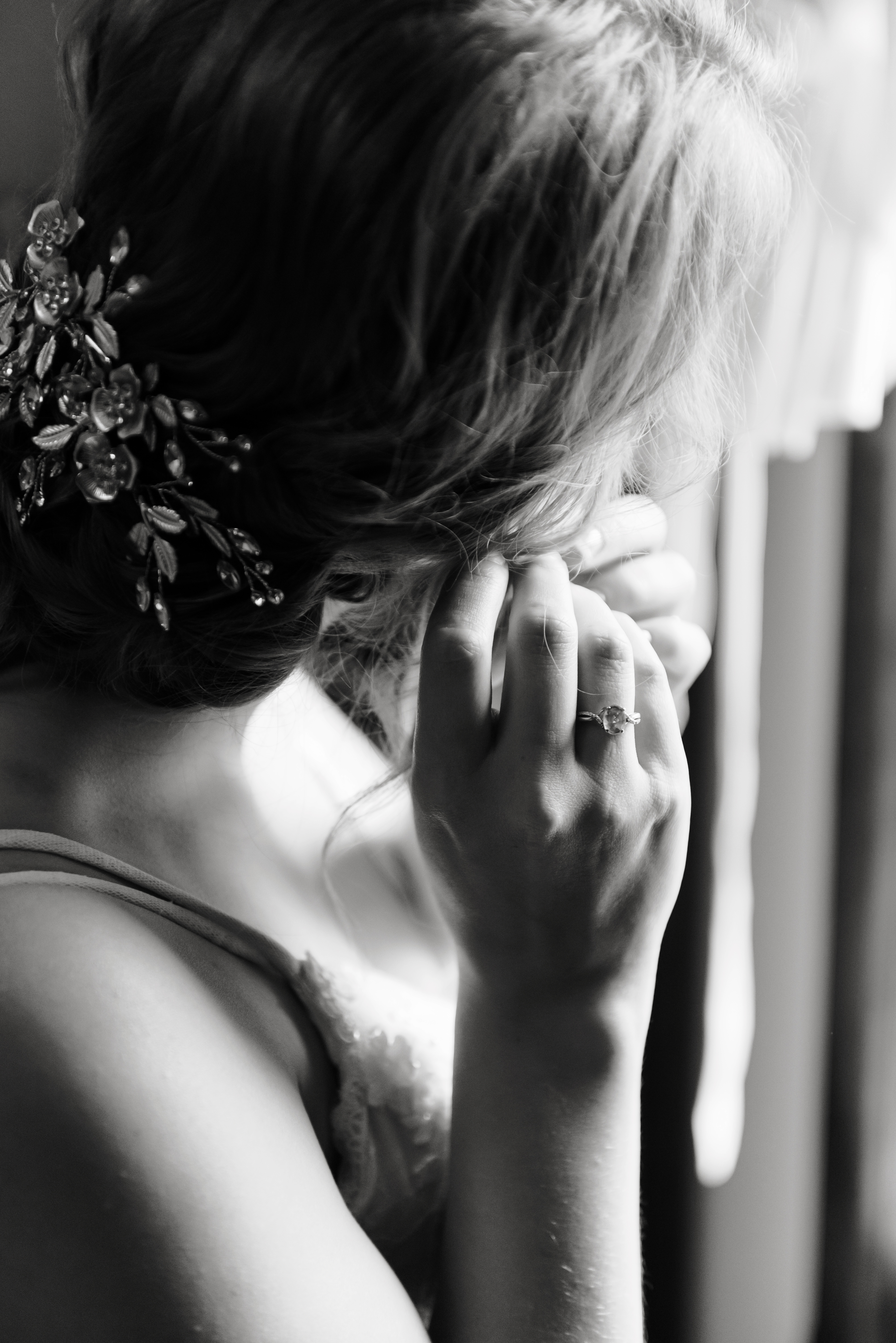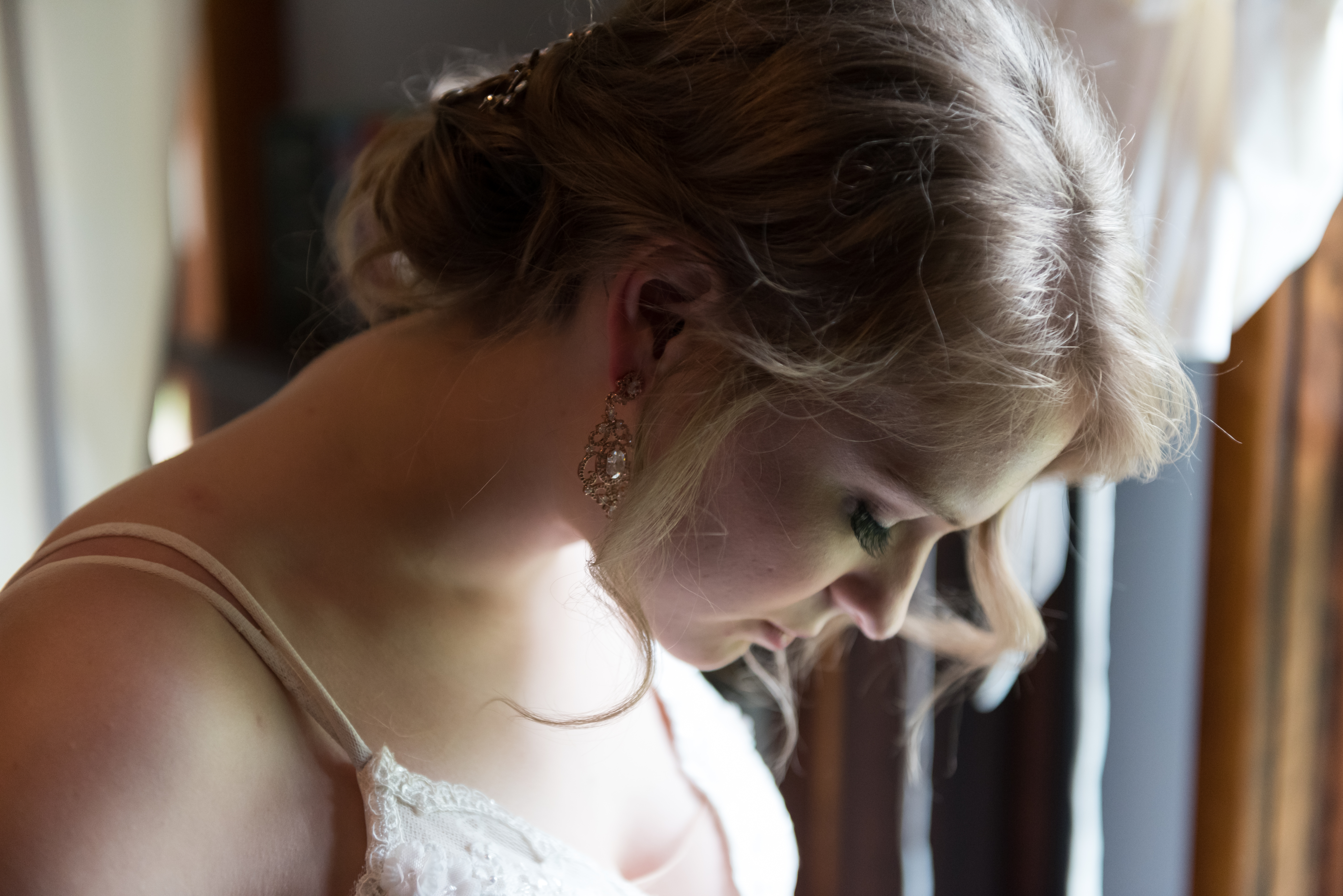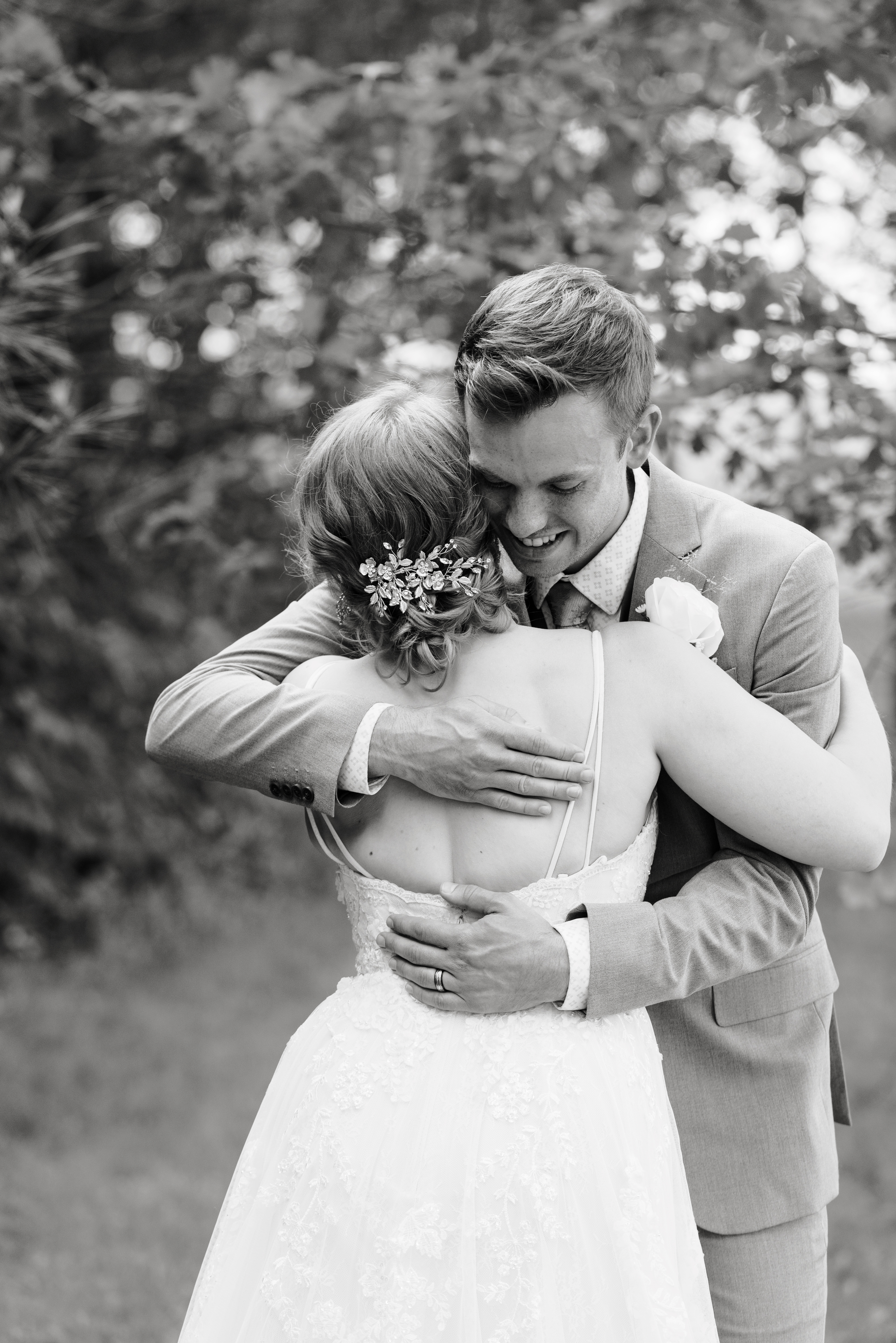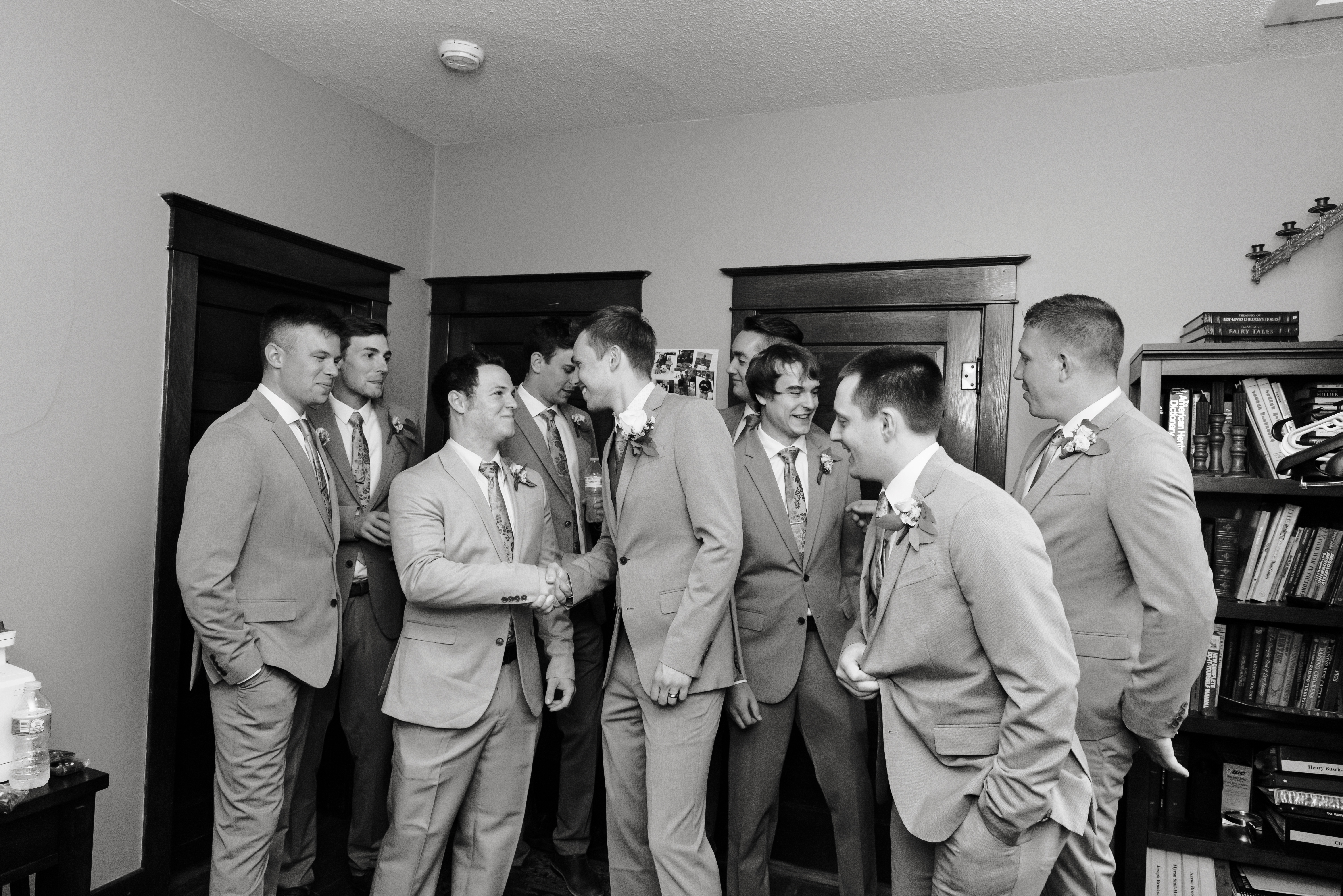 We all got ready at my parent’s house. Our wedding party was filled with family and mutual friends, so during the entire wedding process, I never wanted the parties to be separated. We had a couple’s/family shower and a joint bachelor/bachelorette weekend away at a cabin. The wedding was no different. Except for having two designated changing areas, we were able to spend the morning together, playing games, chatting, and sharing the same nervous energy. Until I actually put on my wedding dress right before the first look, I didn’t care how much my husband saw me.