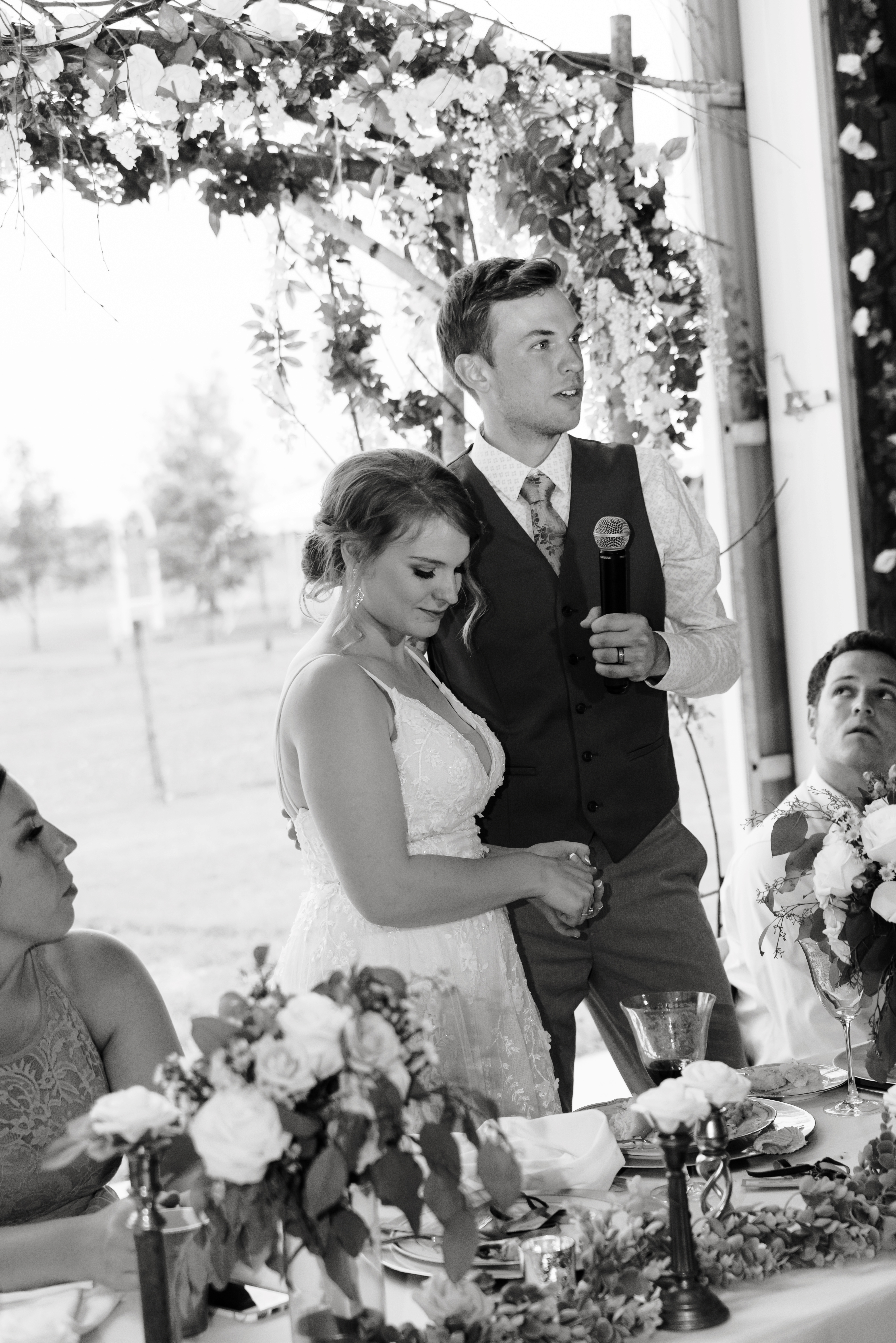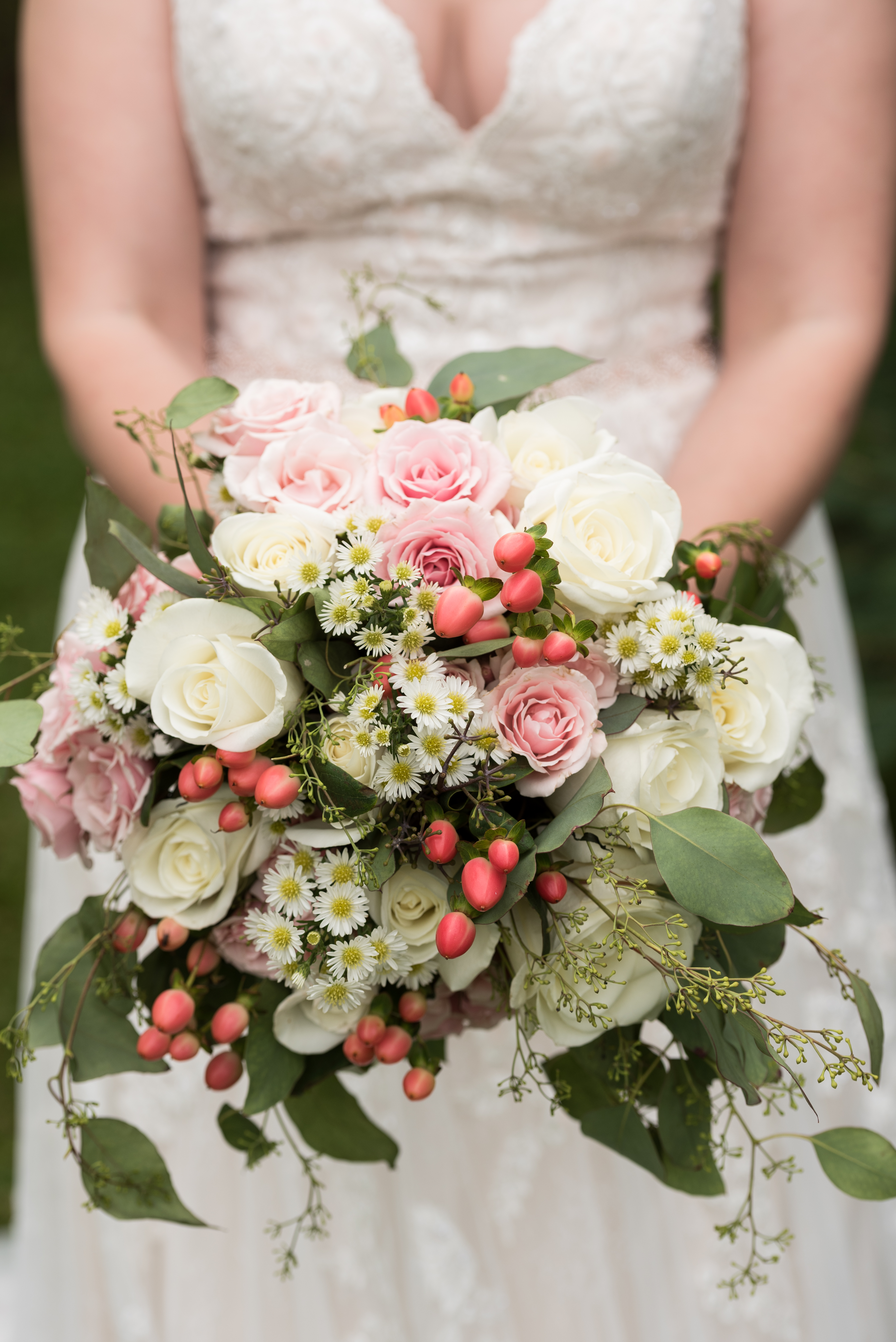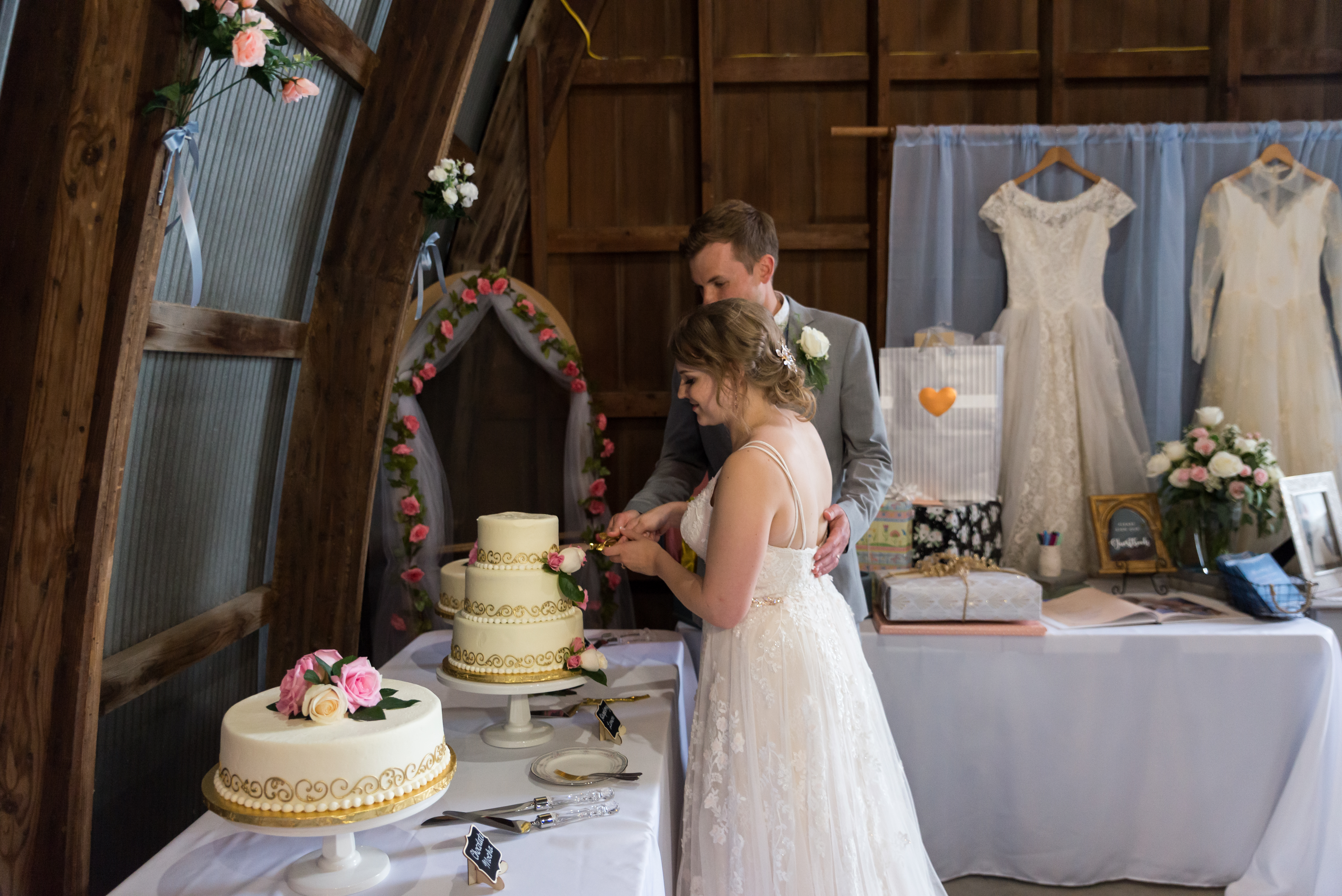 - We had mostly fake flowers and greenery (bought on clearance/50% off from Jo Ann and Michaels!) except for the cake, bouquets, boutonnieres, and memorial table. The flowers we did get were from Hy-Vee and super reasonably priced. The florist looked at my inspiration pics and pointed me toward similar options that were more affordable, i.e. mini roses instead of ranunculus.
