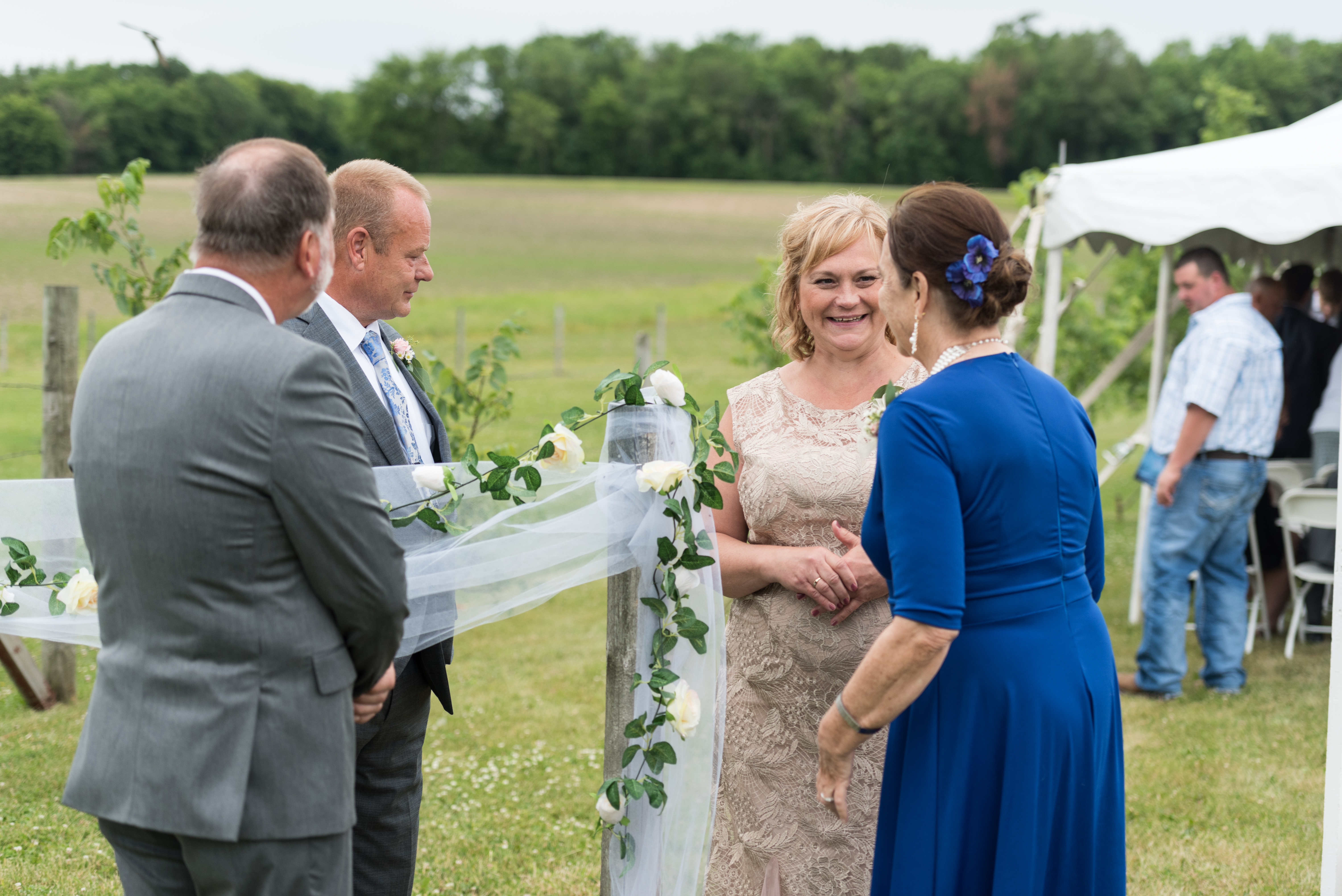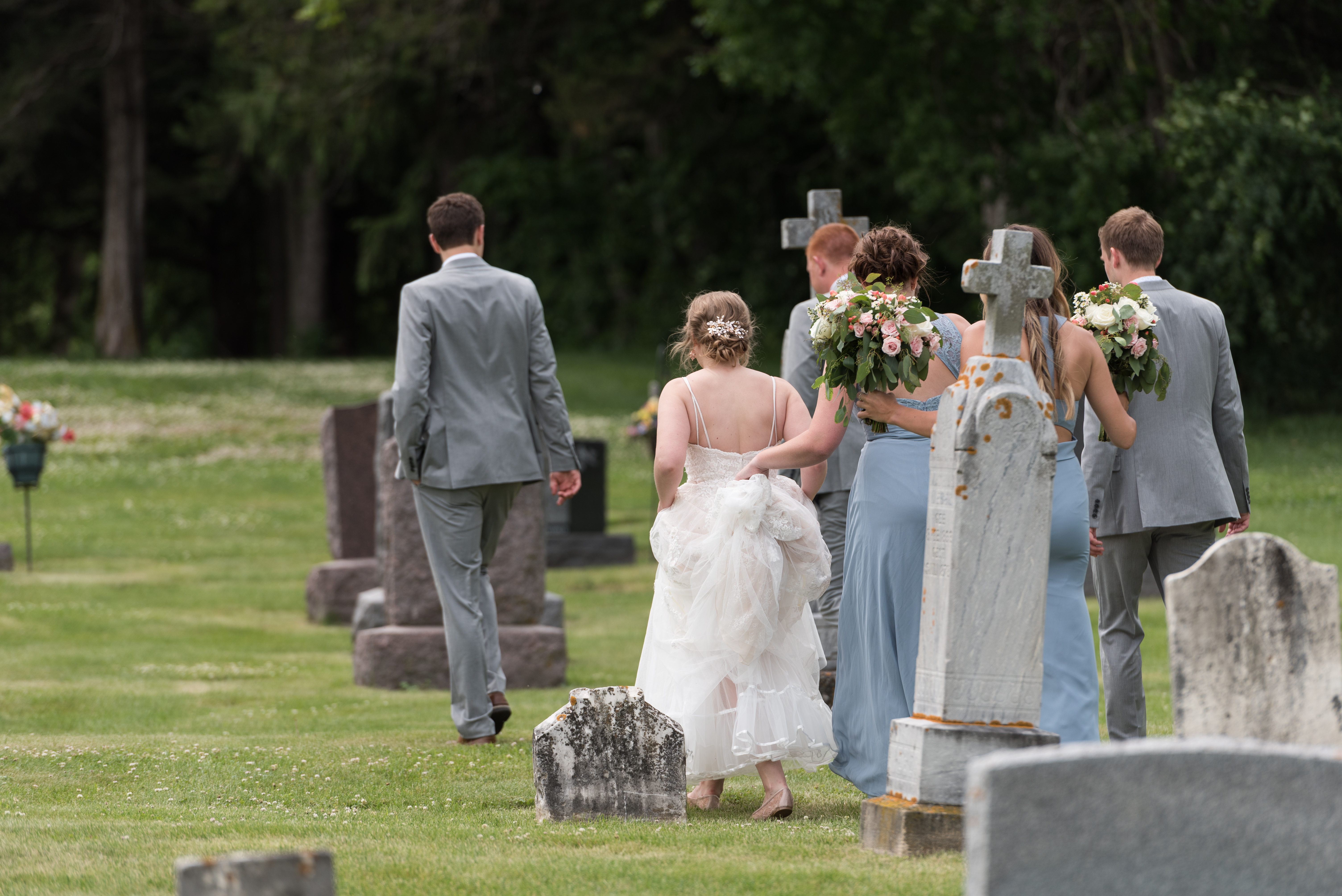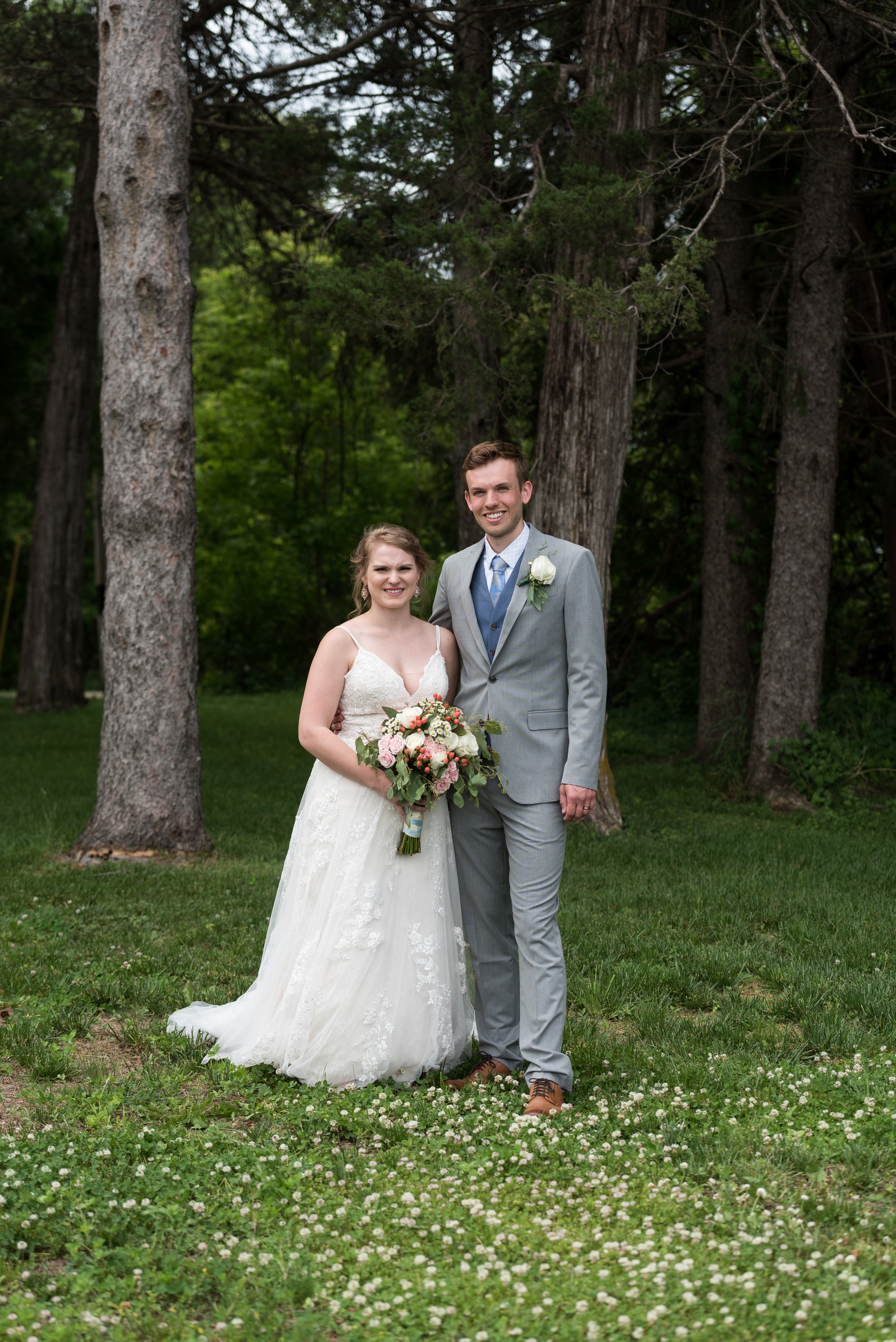 You’re probably wondering why the heck there’s a section for “cemetery” in a wedding post, but it’s not a mistake! Like I said, I’m a sucker for sentimental. When I was younger, if you’d have asked me what my wedding looked like, I would have said it would be at St. Benedict church, where I was baptized and my parents were married. I would have said my grandparents would be there, front row. Well, a few years before my wedding, that church closed and was torn down. A year and a half before my wedding, my grandmother died. Six months later, my grandfather followed. They were both buried in the St. Benedict cemetery, even though the church no longer stood there. So, very early on in my wedding planning, I knew I wanted to spend part of the day at the church site, take pictures in the trees where my parents had their wedding photos taken and visit my family in the cemetery. The church is only half a mile from my parent’s house, halfway between their farm and the farm that used to be Grandma Brooks’ before she died in 2010 and we had to sell it. My uncle Steve and aunt Mary Elizabeth were also buried in this cemetery, so we laid flowers for them as well. I wanted to visit my other grandparents and Auntie Nancy at the cemetery in town as well, but we ran out of time that day.
