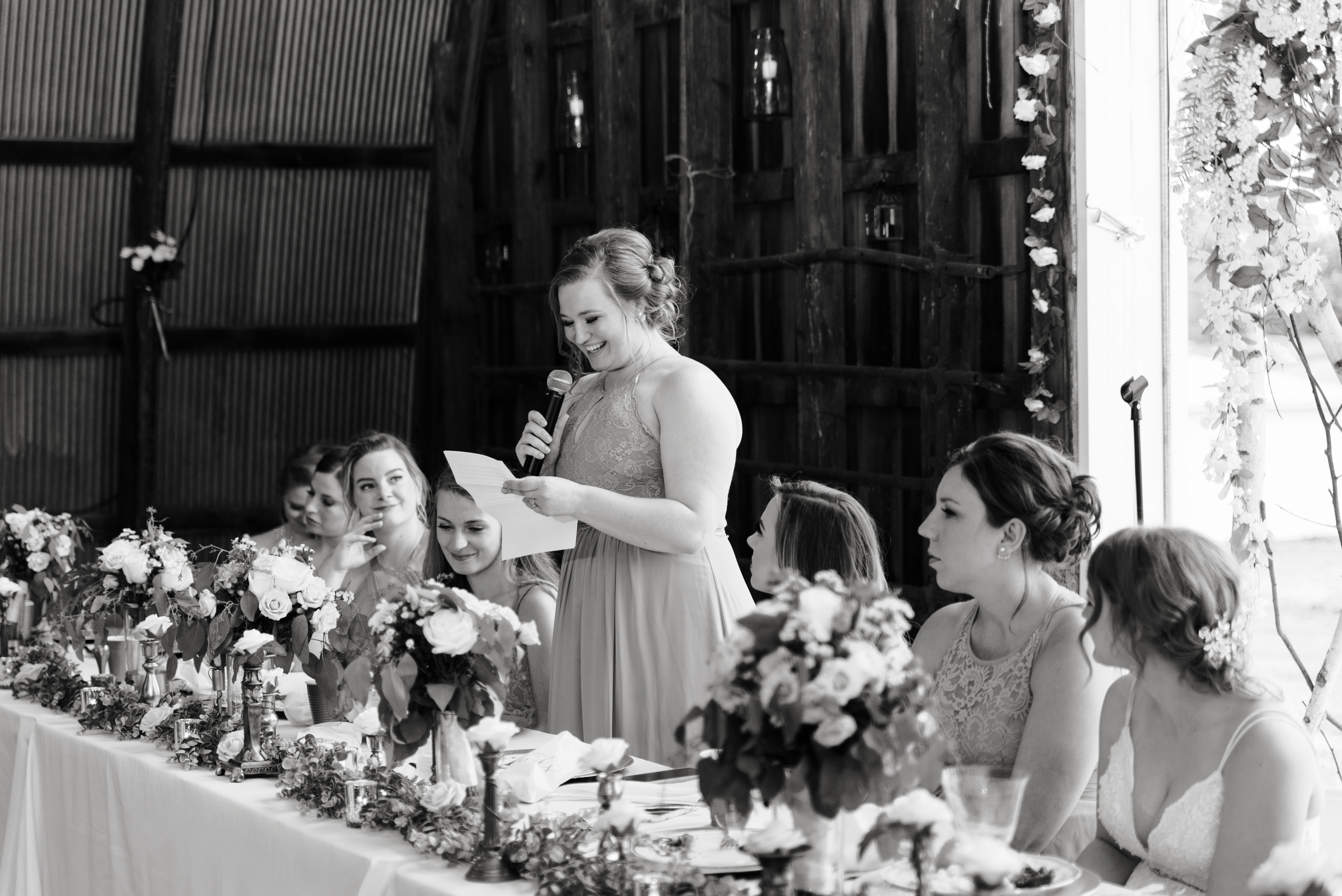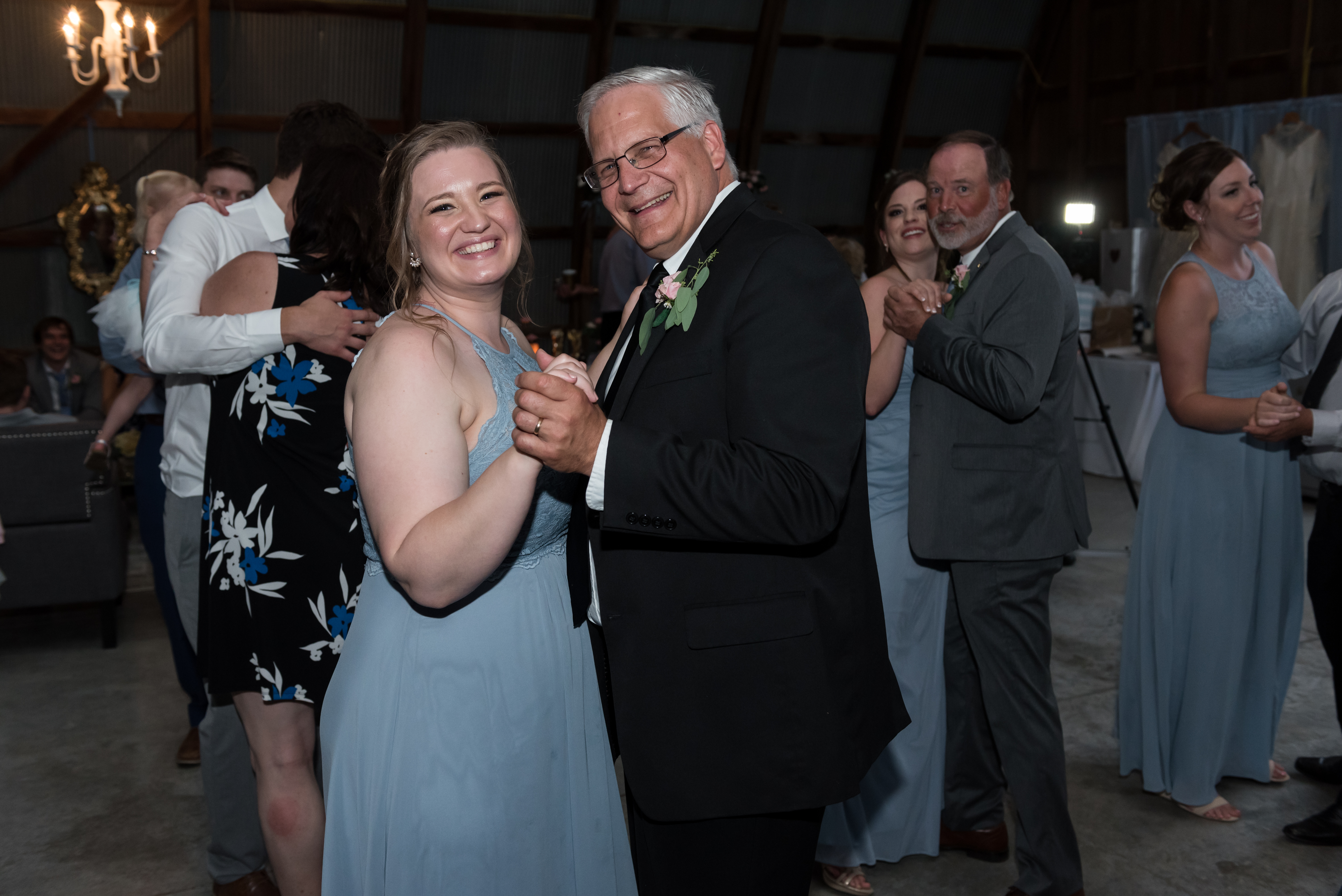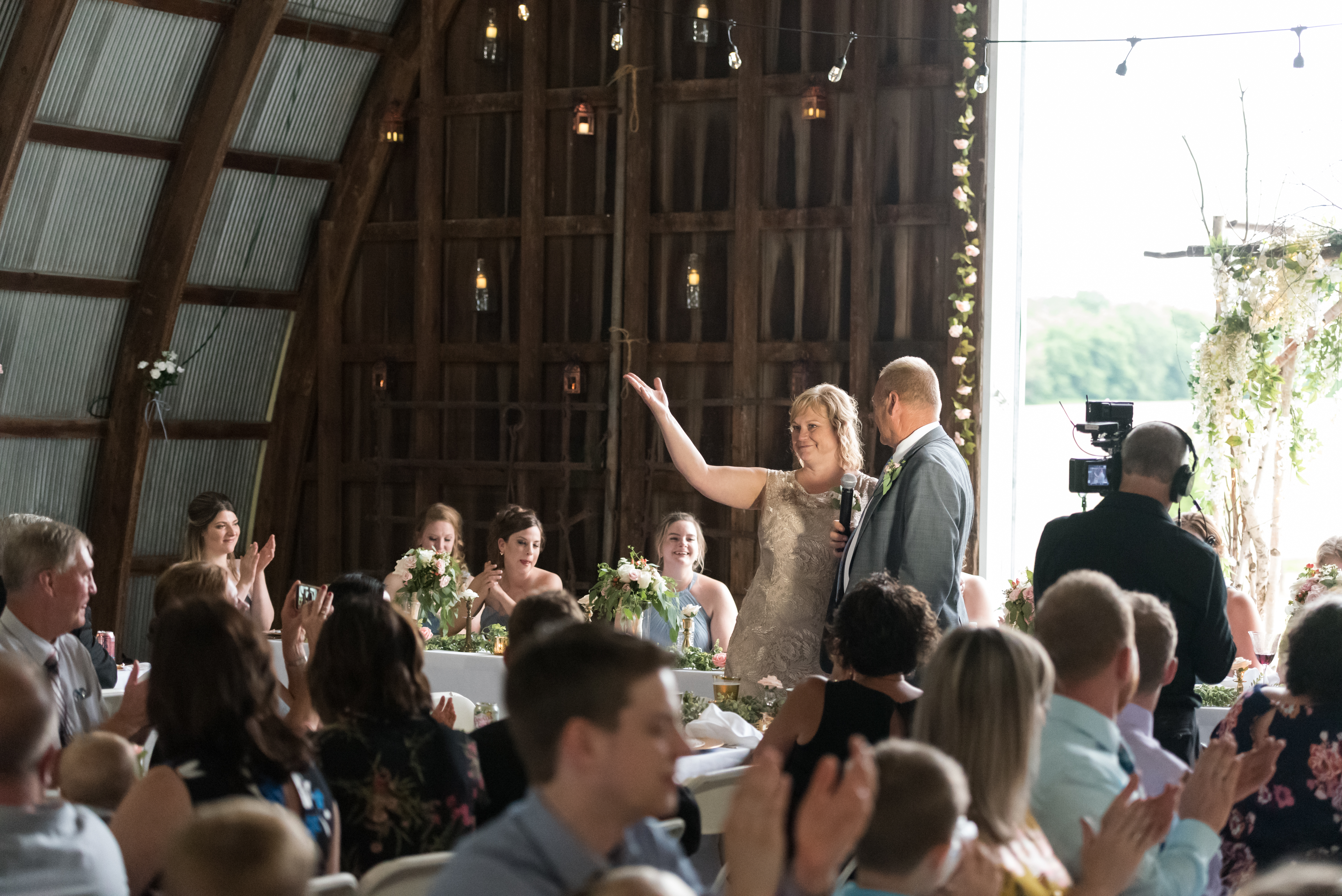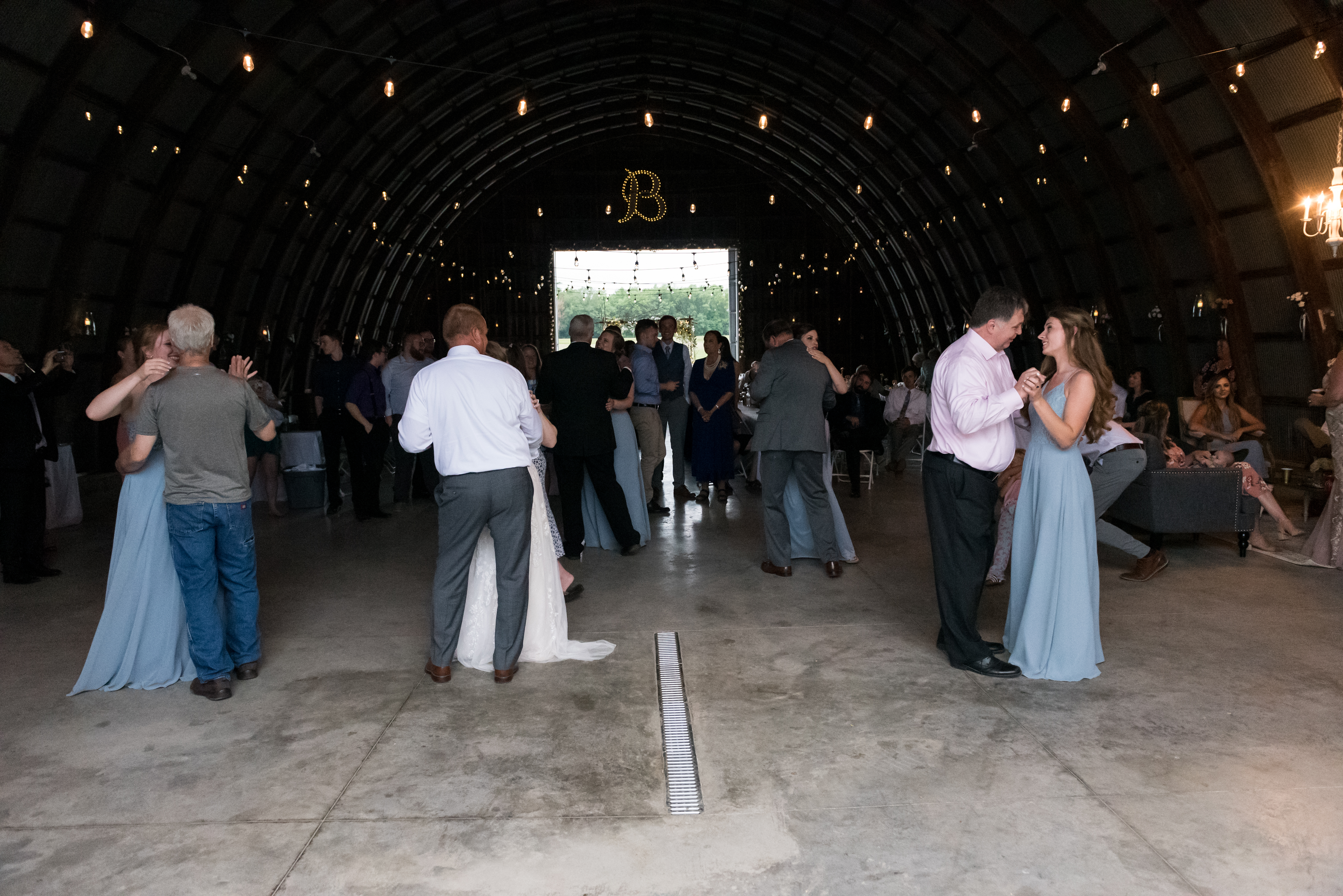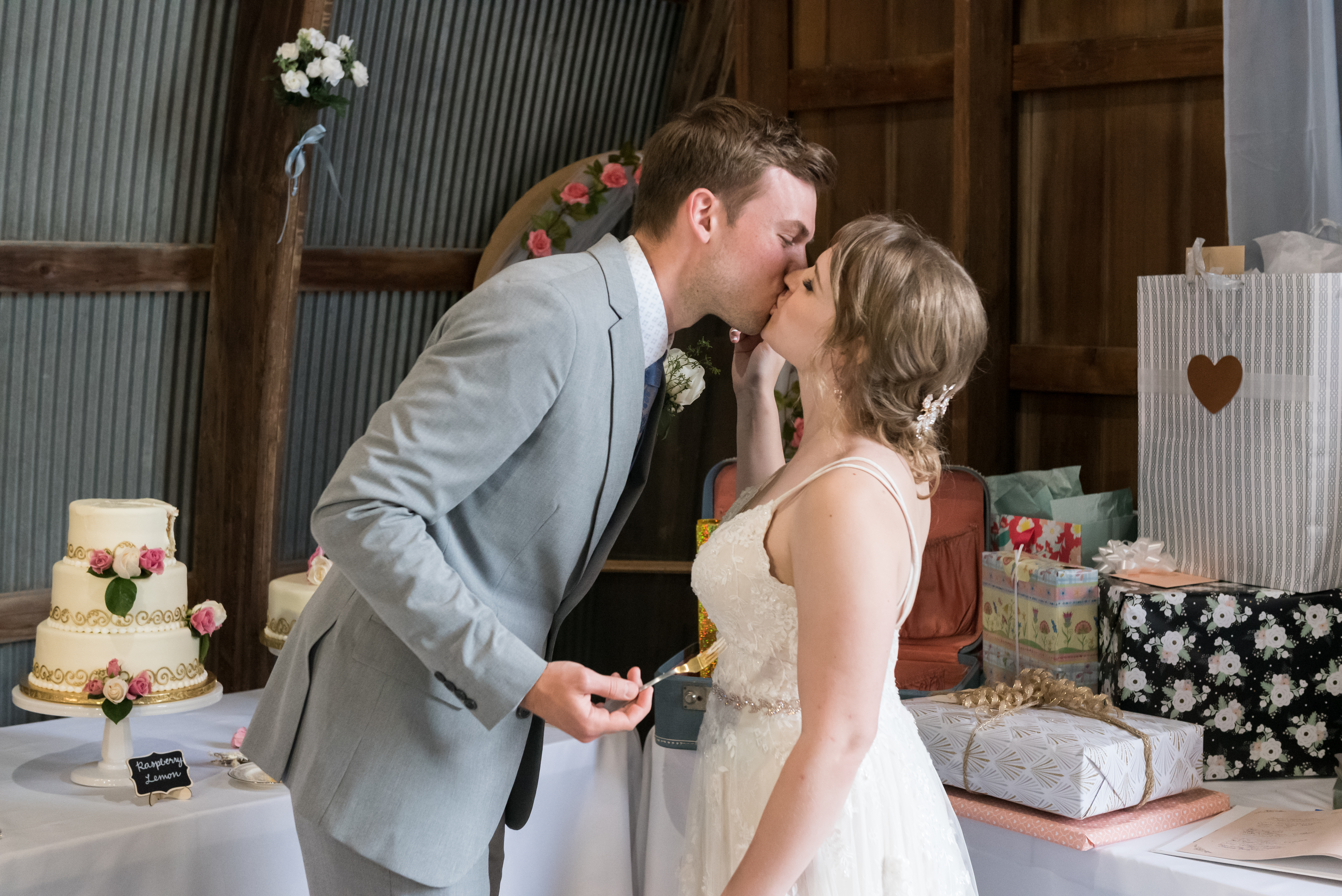 We had our reception in the machine shed, a pretty plain, nondescript building, but it hosts a party really well. I just decorated the crap out of it with lanterns and garlands until hopefully you didn’t walk in and expect a Haybine to hit you in the face. We had a relatively small wedding–we invited 175 people and 150 people showed up. We had a huge head table and then four reception tables, arranged Hogwarts Great Hall style. Famous Dave’s did a buffet (though I made sure to have as many vegetarian options as possible) and Thirsty Whale Bakery made our Lemon Raspberry, Red Velvet, and Mocha Fudge cakes. We did all the speeches and the dances. I do not like cheesy weird traditions (though if you do, great, we’re all different!) so there was no shoe game, dollar dance, garter toss, bouquet toss, or anything else uncomfortable.