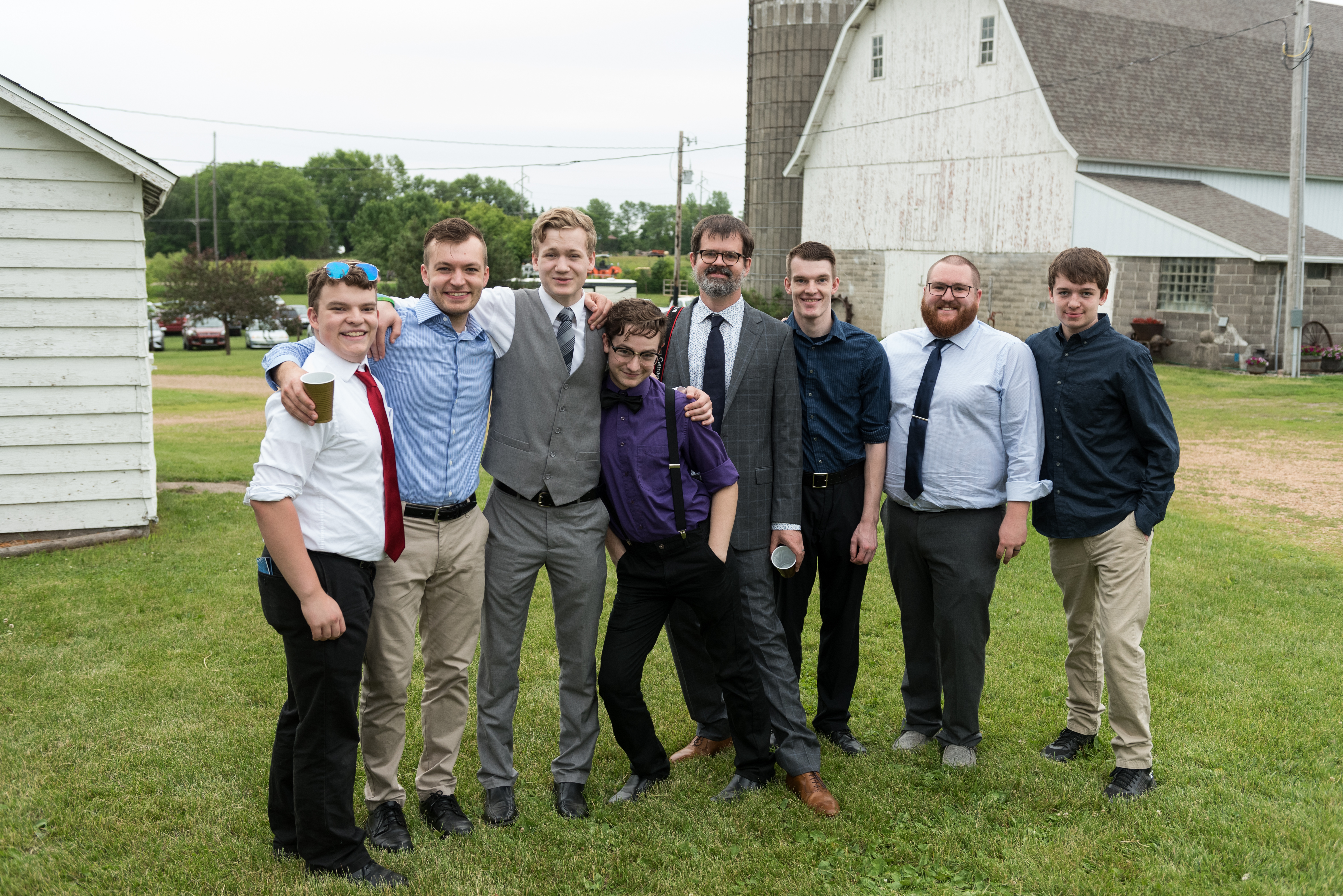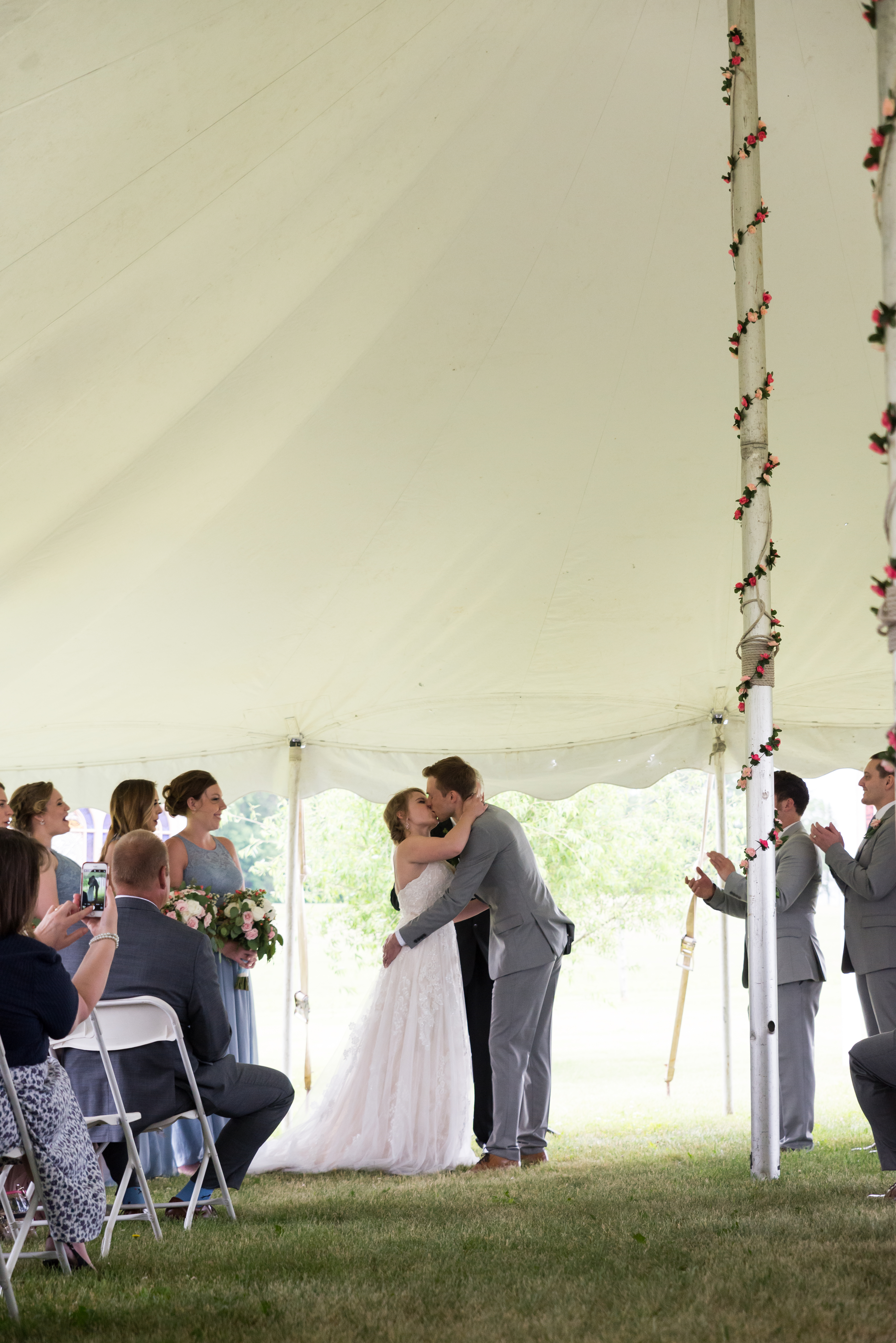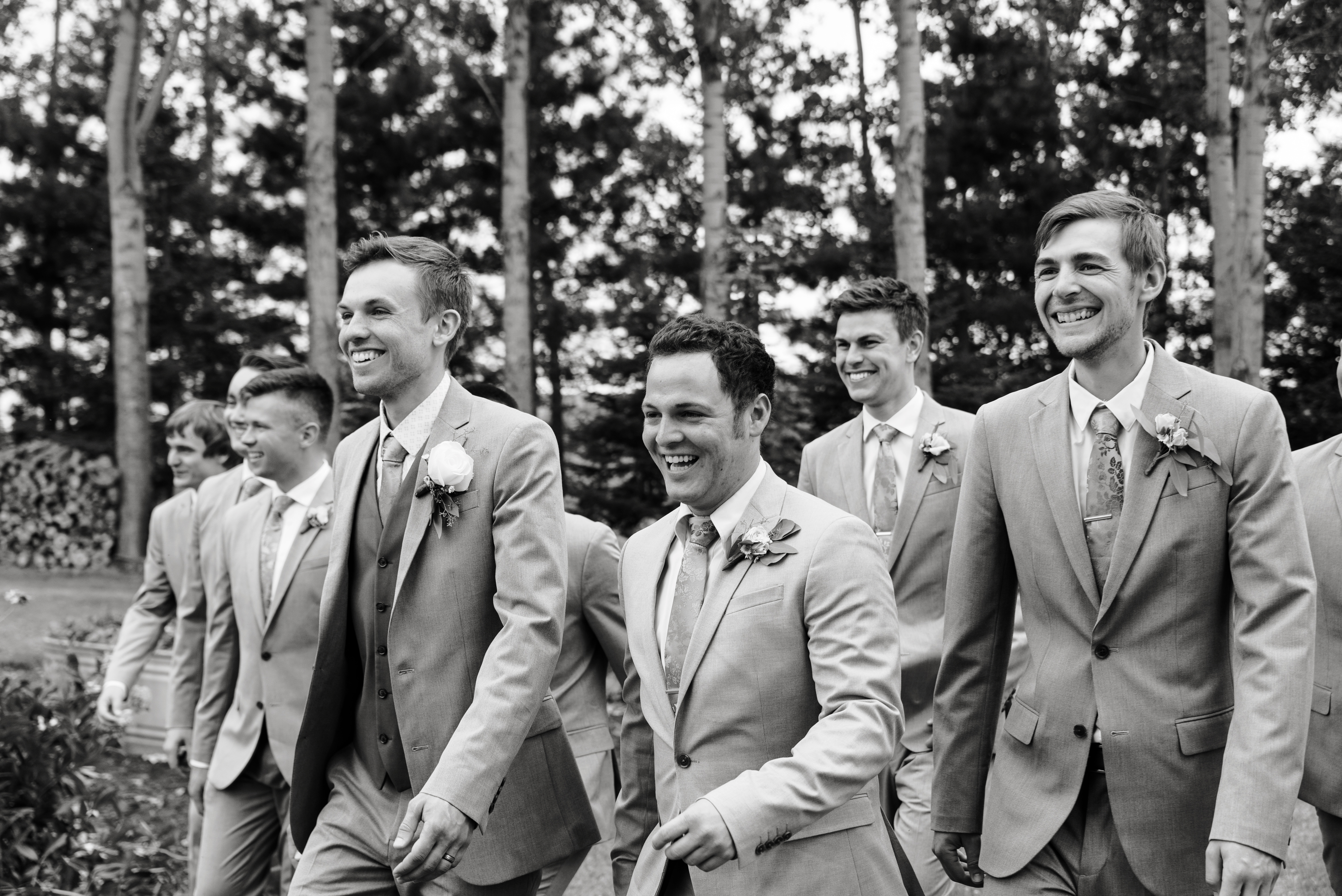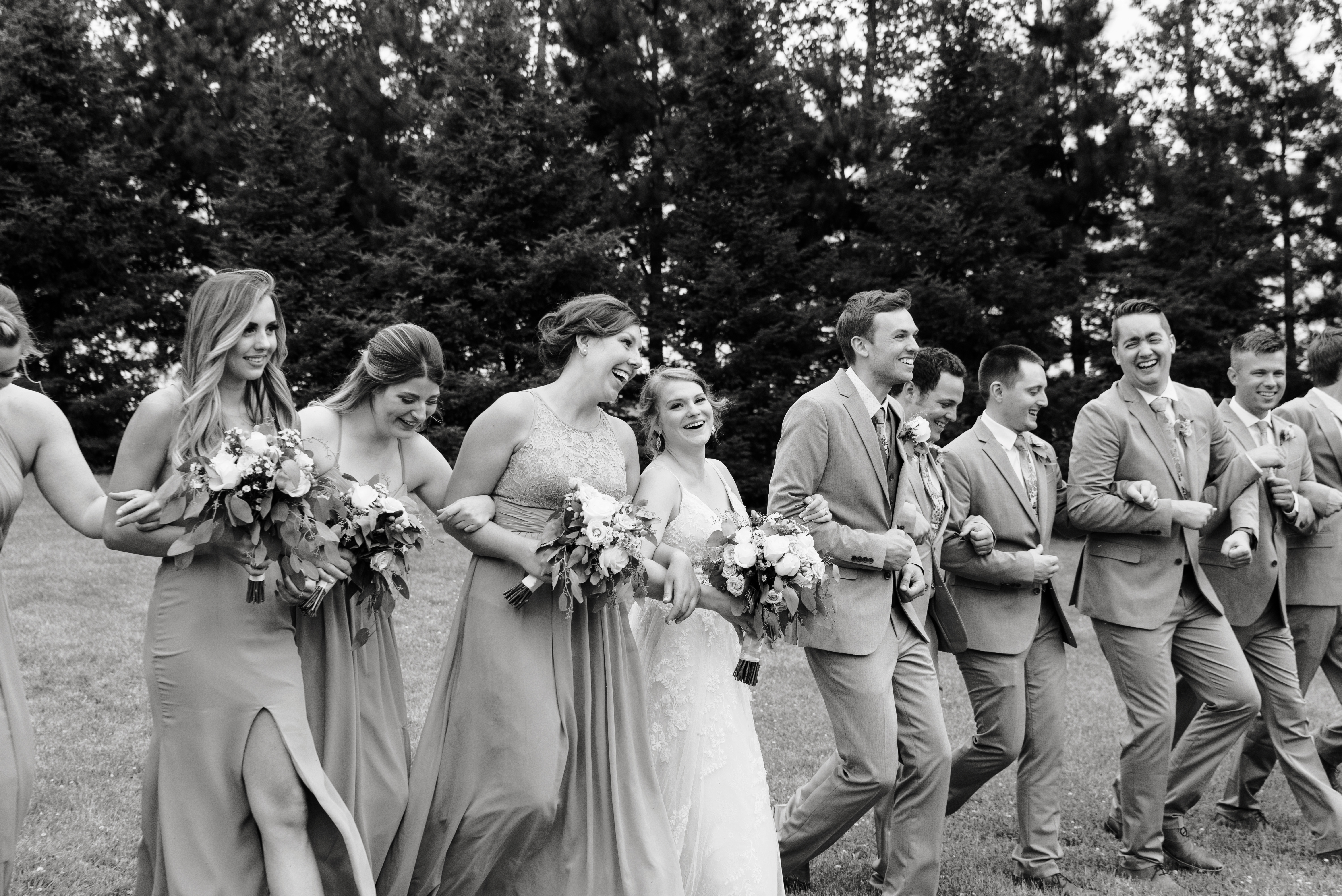 We had a large wedding party of eight bridesmaids and eight groomsmen (and most of them were related to me!). Erik and I each have one sibling, so we included them, six of my cousins, and eight of our friends. At the time we didn’t have any nieces or nephews, and I didn’t want to corral little children, so we opted to not have flower or ring children (okay sorry, that sounds like a horror movie thing).